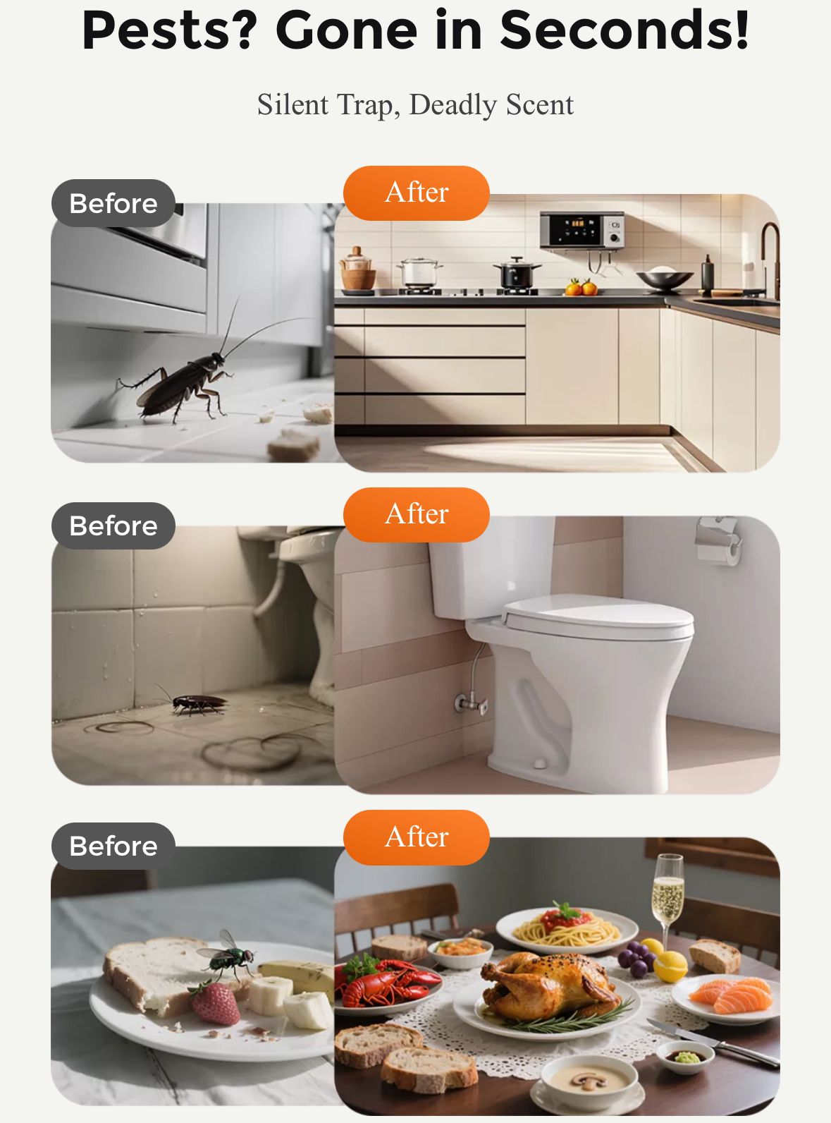 EFFECTIVE COCKROACH REPELLENT: Continuously releases a stimulating scent targeting cockroaches’ sensitivity to odors, causing them to avoid treated areas and quickly flee for efficient pest control in your home.